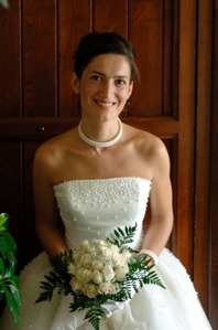 | Inviata e protagonista! Strano no? Trovarsi a raccontare cercando di non annoiare quelle che molti definiscono il Giorno piu' bello...avendolo vissuto da protagonisti...Tutto e' iniziato in un giorno di inizio 2006 quando dal Ristorante da noi contattato arriva l'ok per la disponibilità in una data, scelta da loro, davvero speciale 08.07.06. E' curiosa sia la sequenza numerica, sia perche' ci avvediamo subito tramite internet che si giochera' la finale dei mondiali di calcio ...e noi, gli sposini tifosi, ci lanciamo in un'ambiziosa e veritiera previsione" Oggi sposi, domani campioni" ? Noi lo siamo stati!!! Cominciano i preparativi sui quali ognuno poi, a cose fatte puo' scrivere un decalogo: il nostro e' consultabile qui!!! Ma ecco come e' andata quel mitico giorno | Suona la sveglia. Il giorno prima di sposarsi ha piovuto copiosamente ma che bello aprire la finestra e scoprire che il sole fa capolino dietro le nubi...Ma non c'e un minuto da perdere pero', Io devo precipitarmi alle 8 dall'estetista e alle 9 dalla parrucchiera...per Giorgio invece una seduta di parrucchiere e barbiere . Alle 10 arriva a casa la squadra del fotografo e cineoperatore. L'abitazione diviene il primo set della giornata : al piano terra e' lo spazio atelier dove lo sposo si prepara e si intrattiene con i genitori ed i parenti che passano a fare un saluto e gli amici che lo invitano a riflettere su quello che sta andando a fare!! E' abituale, prima di posarsi ricevere a casa la visita di parenti e amici a cui offrire dei dolcetti di benvenuto... | ||||||